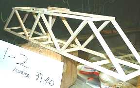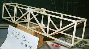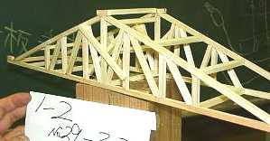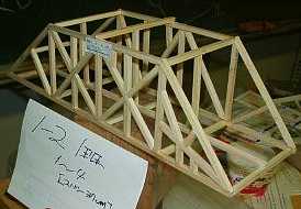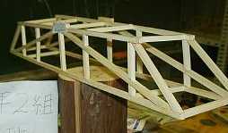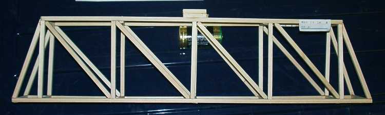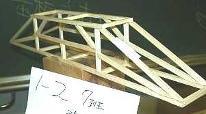 | 1班の作品−−−(耐荷重=12.75kg)参考記録 | 規定の全長よりも短かったので,スパン(支えの距離)350mmにて参考記録とした 出席番号 1〜4 |